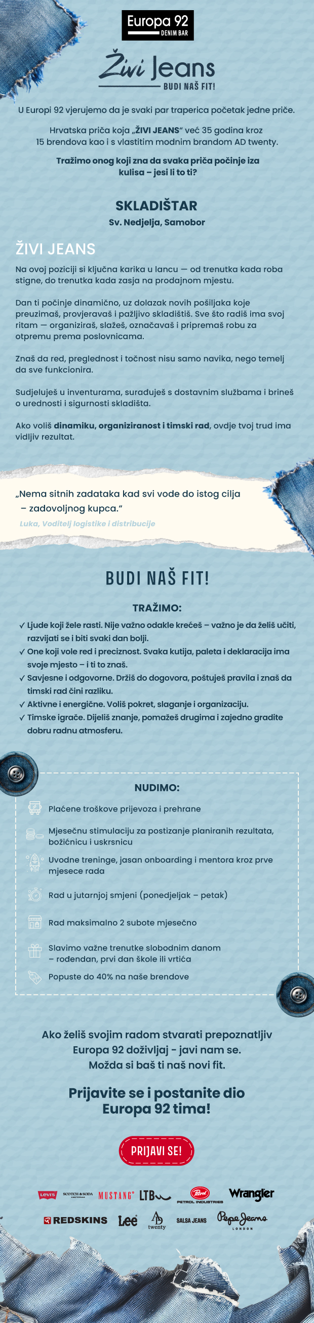 Vaši osobni podaci bit će pohranjeni do završetka natječaja za otvoreno radno mjesto za koje ste se prijavili, osim ako ste sami odabrali da Vaše podatke zadržimo na dulji vremenski period i obavještavamo Vas o budućim mogućnostima zaposlenja.