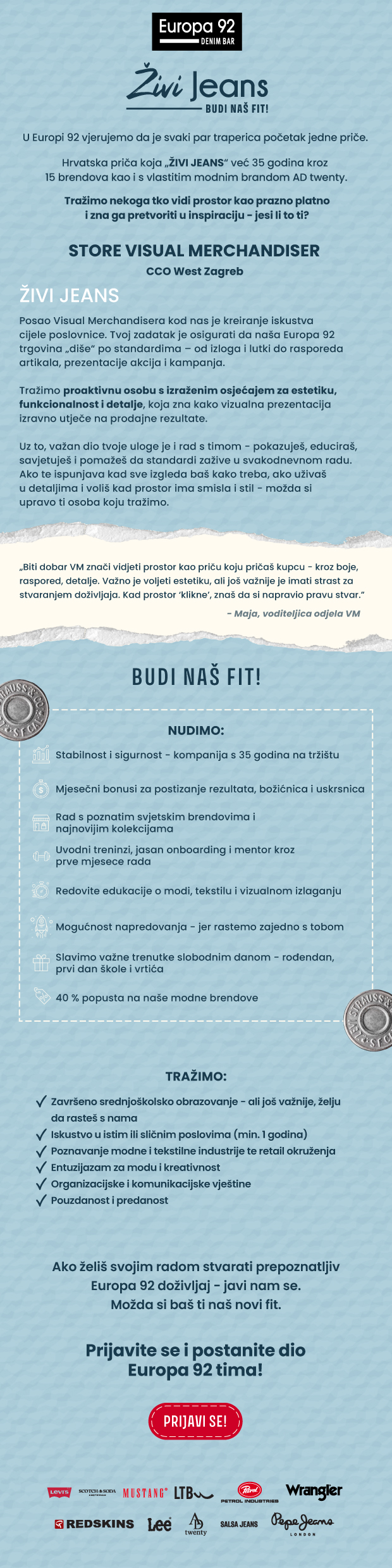 Europa 92 koristi TalentLyft, aplikaciju u vlasništvu tvrtke AdoptoTech d.o.o. (U daljnjem tekstu „TalentLyft“) u sklopu Našeg procesa zapošljavanja.